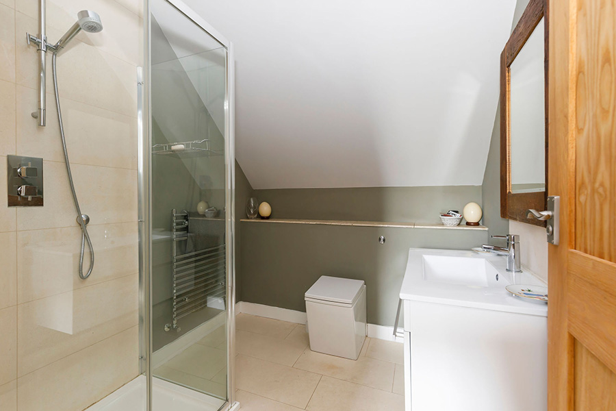 Two sets of stairs lead to the first floor. At the northern end of the barn is a double bedroom with an ensuite shower room whilst on the southern end are two further bedrooms, both having ensuite shower rooms.